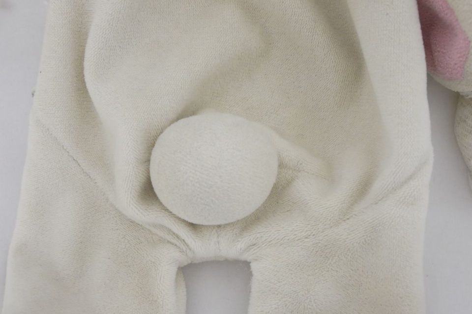 ビーズ袋をオシリに留め付け、しっぽの綿交換とつけ直し、全身の綿入れまで完了です♪お首の綿口は後程閉じますね♪