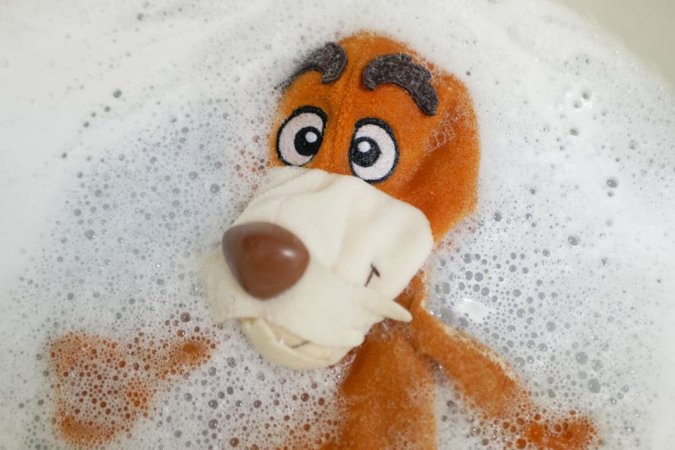 鈴・鼻・しっぽはしっかりと中綿が入っていますので、今回は新綿交換せずこのままお風呂エステにお入りしますね。
