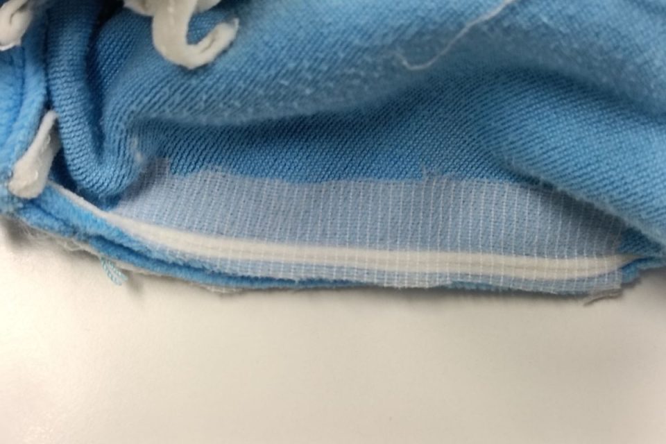 綿口は力がかかって穴が広がってきていますので、部分的に接着芯を貼って補強しましょう!
