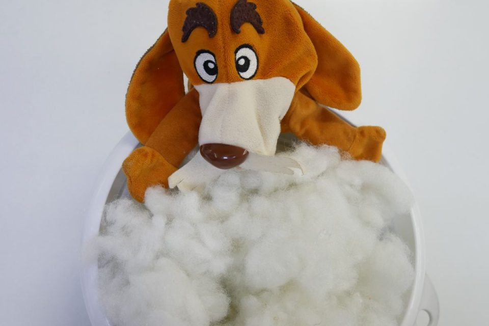 もちさんのように伸びやすい生地のぬいぐるみは、もともと一般的な綿ではなく、マシュマロ手芸綿が使われていることが多いです。
