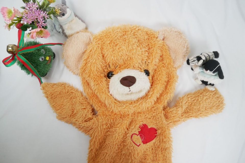くまたんくんはお体の毛が全体的に束感になり、毛玉やホコリが付いて絡まっております。