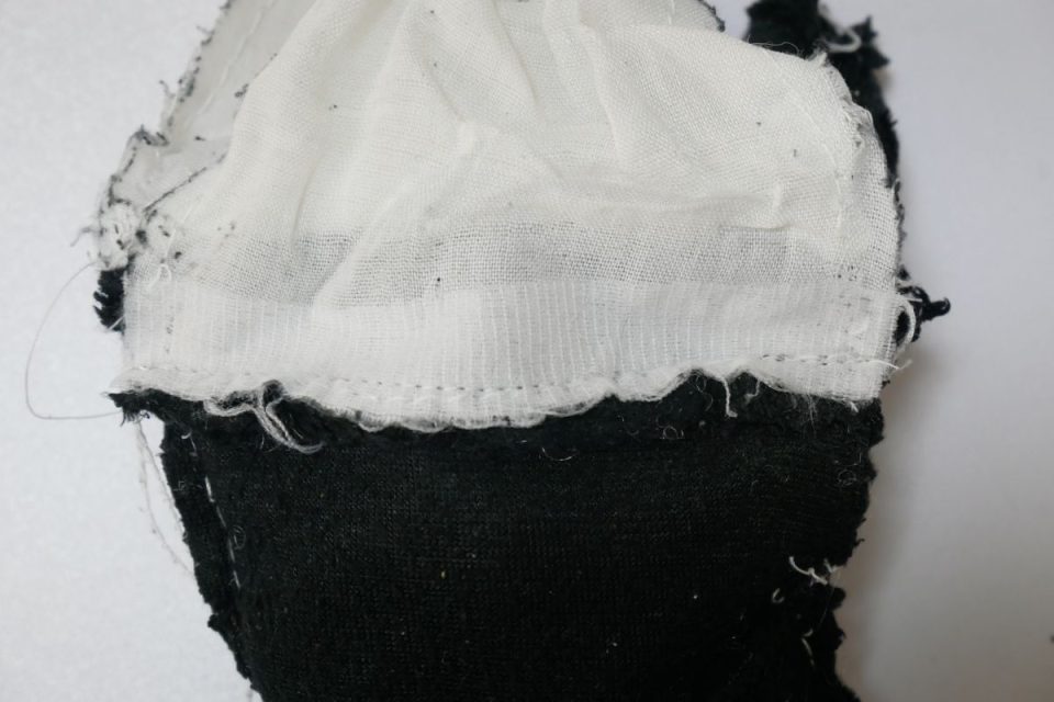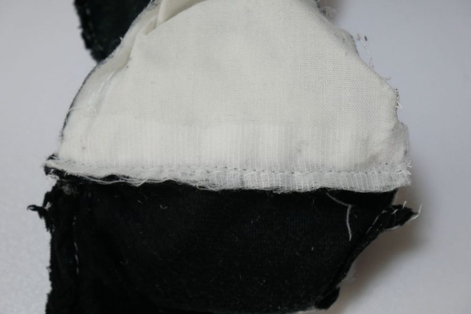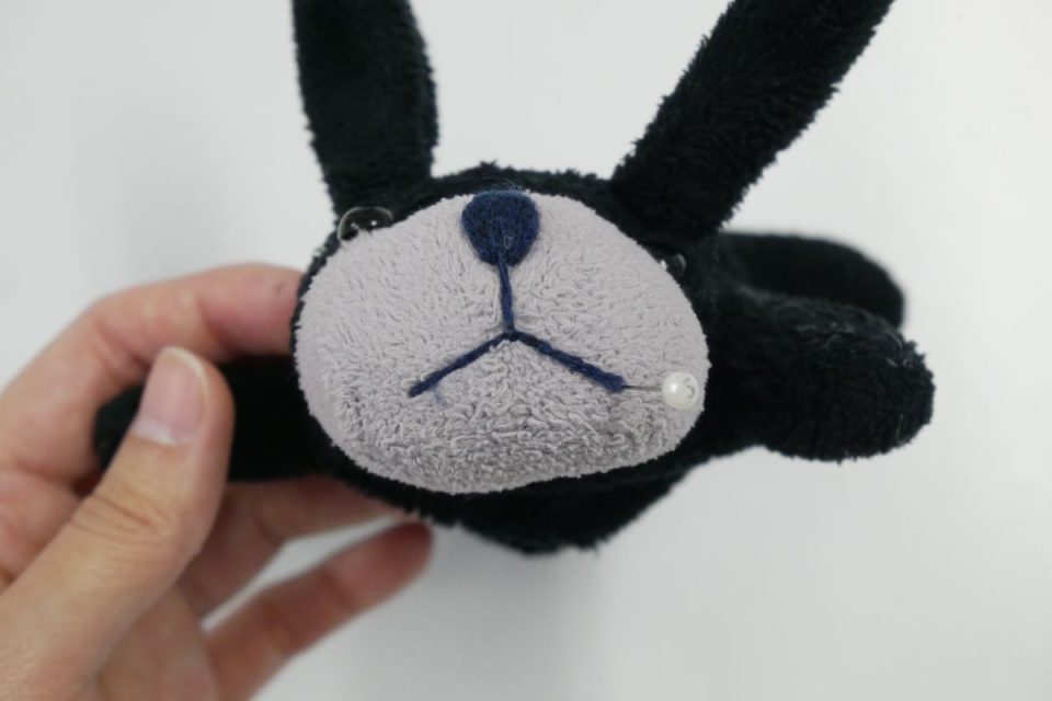 綿入れ、オハナとオクチの刺繡まで完了です♪お背中の綿口は後程閉じますね♪