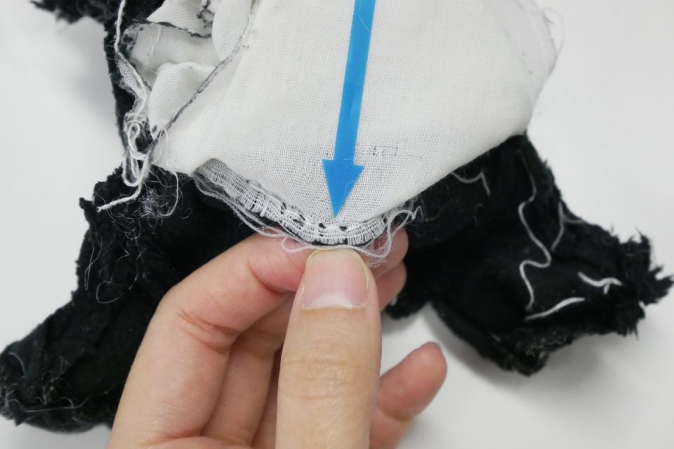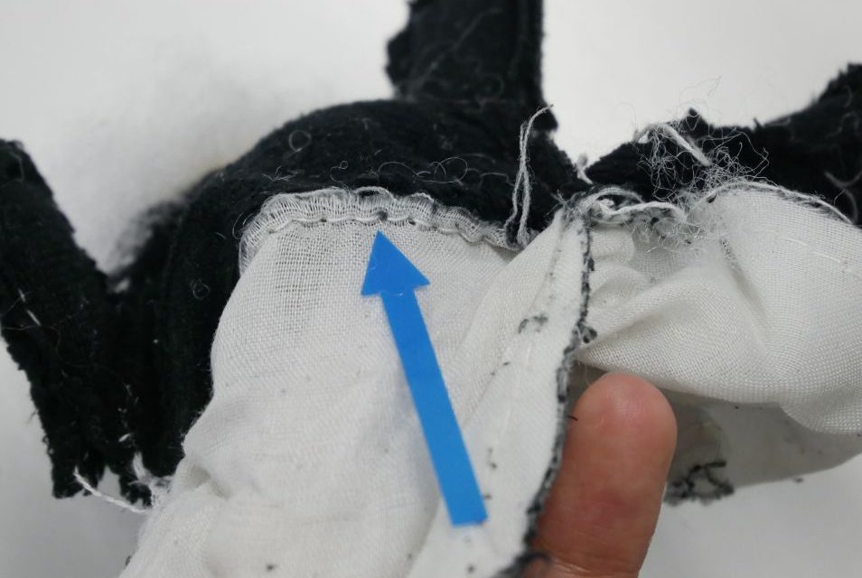 くるりんぱで検査したところ、裏地は端からホツレて縫い線から外れそうになっていました。