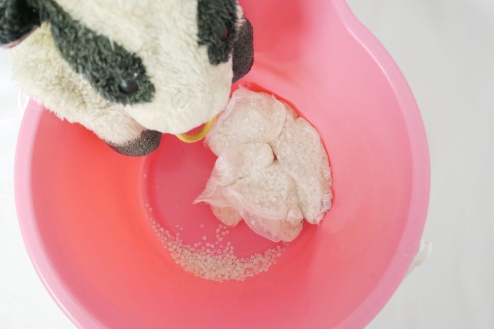 手足先に入っていましたビーズ袋は中身がもれていましたので新しく作りなおしますね(^^)」