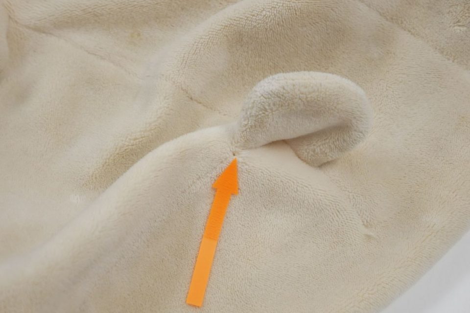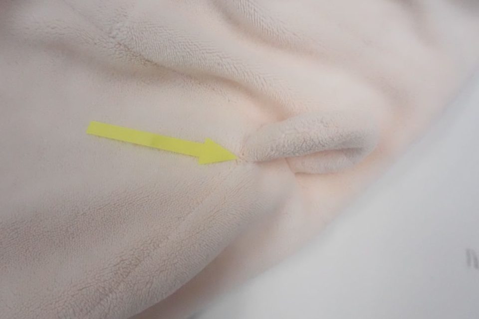 綿口に穴があいていましたので、補強前にしっかりとふさぎますね♪
