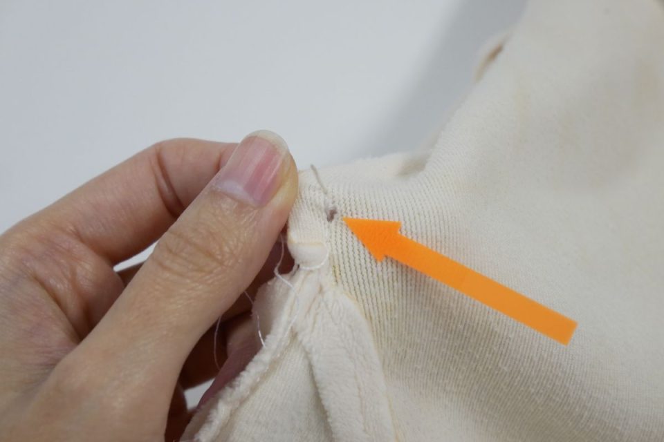 オハナ周りの切り替え部分も縫い代がとても少なかったので縫い込みます。