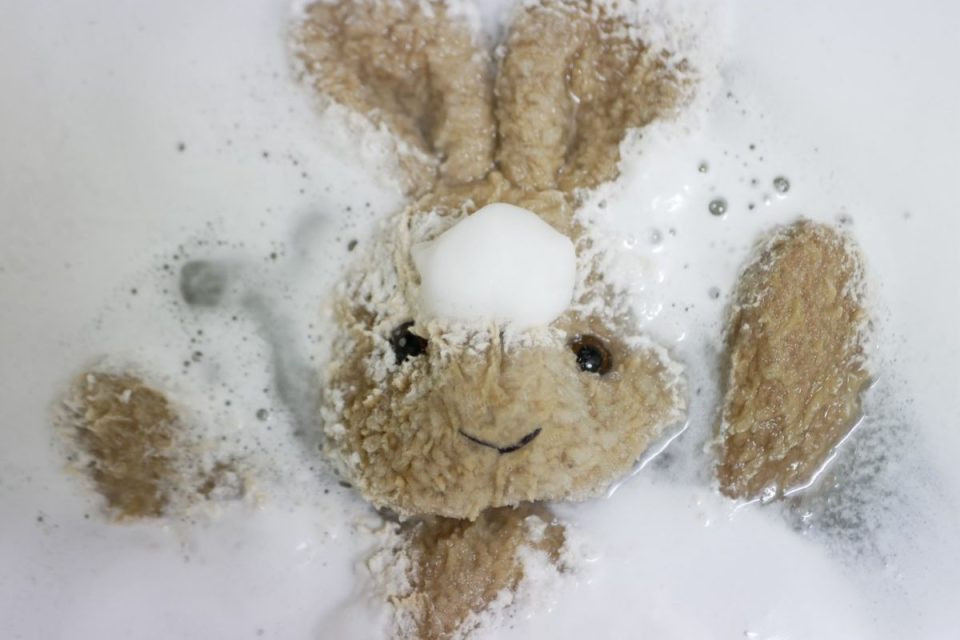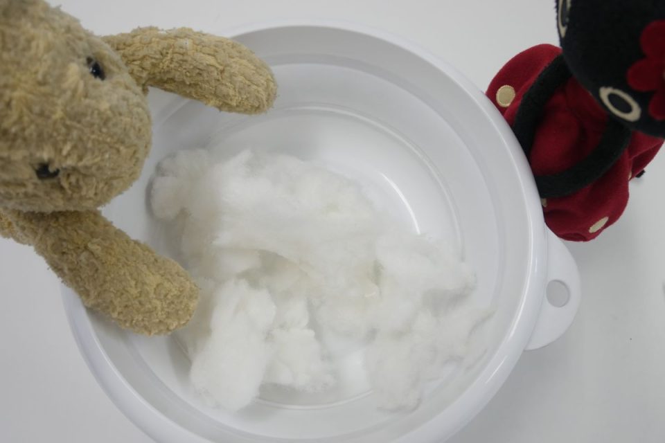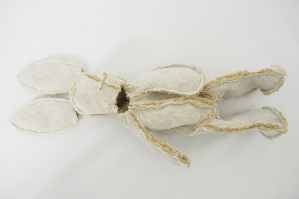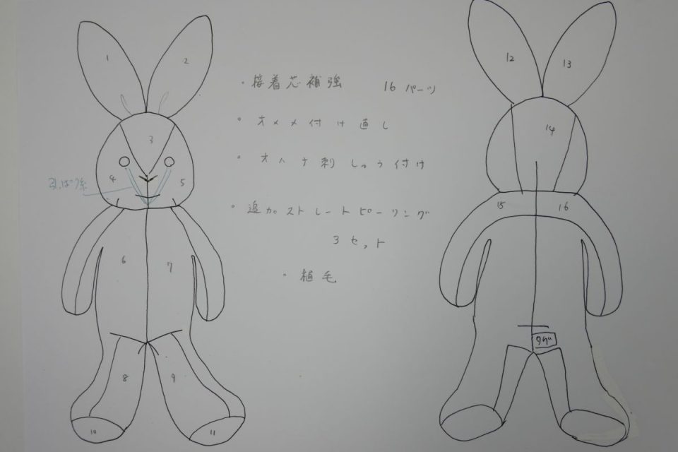 うさこちゃんの場合は、現在の生地を活かして裏側から補強する【接着芯補強+オケガ治療】で進めさせていただきます。