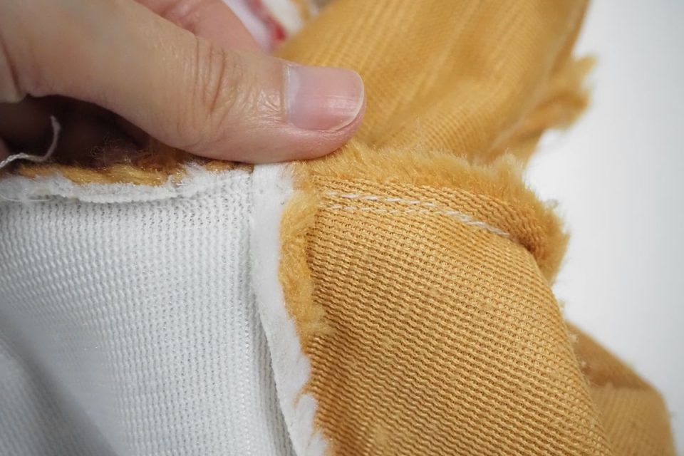 首の部分は縫い代がとても少ないのでほつれないように少し縫い込みますね♪