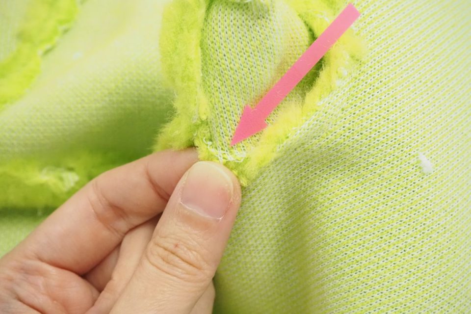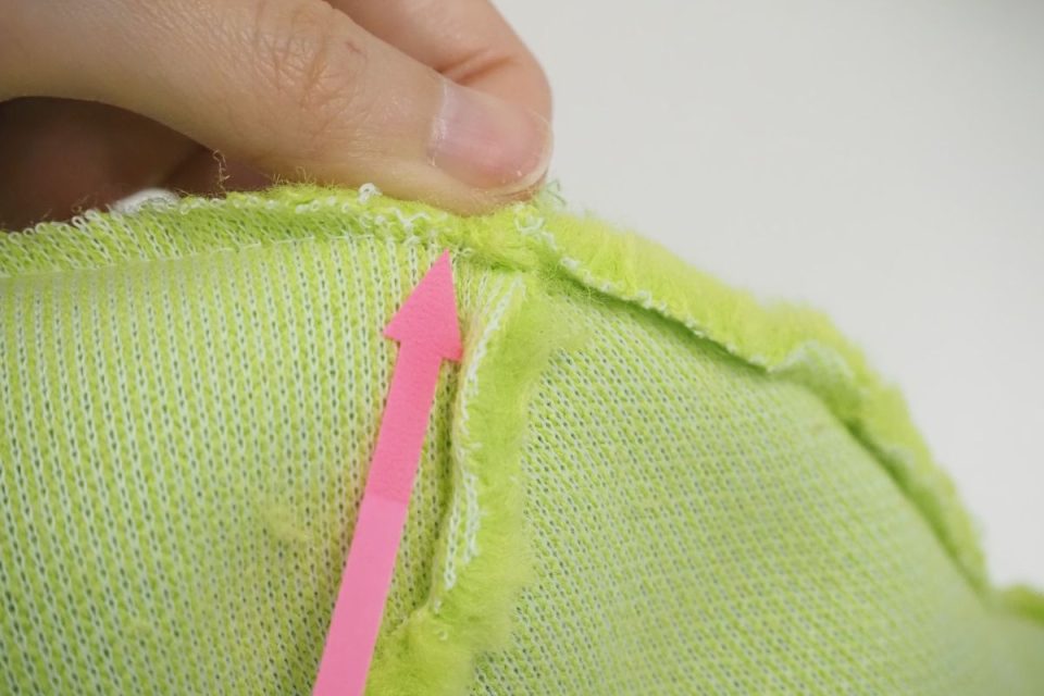 このままにしていると左脇やオクチのようになってしまいますので、縫い代をしっかりとって縫い直しますね(^^)/