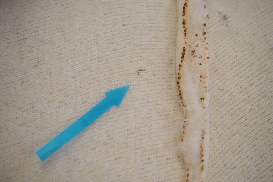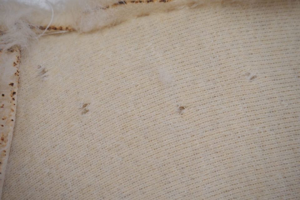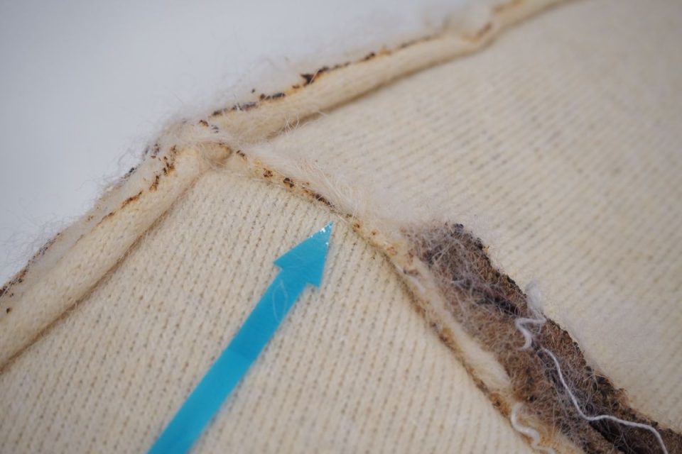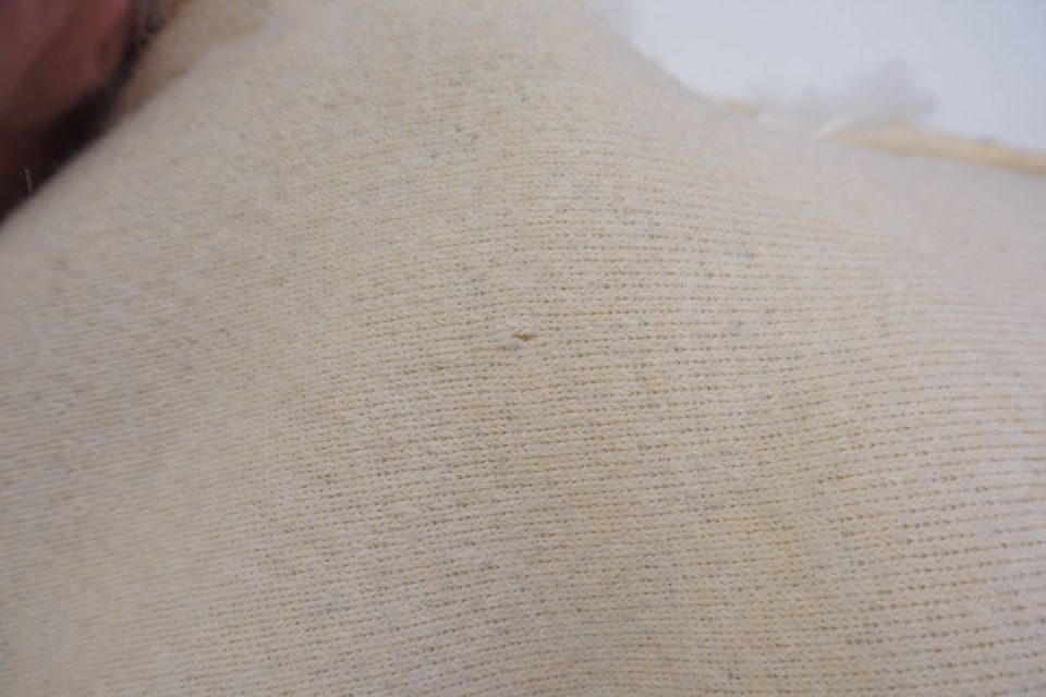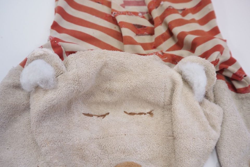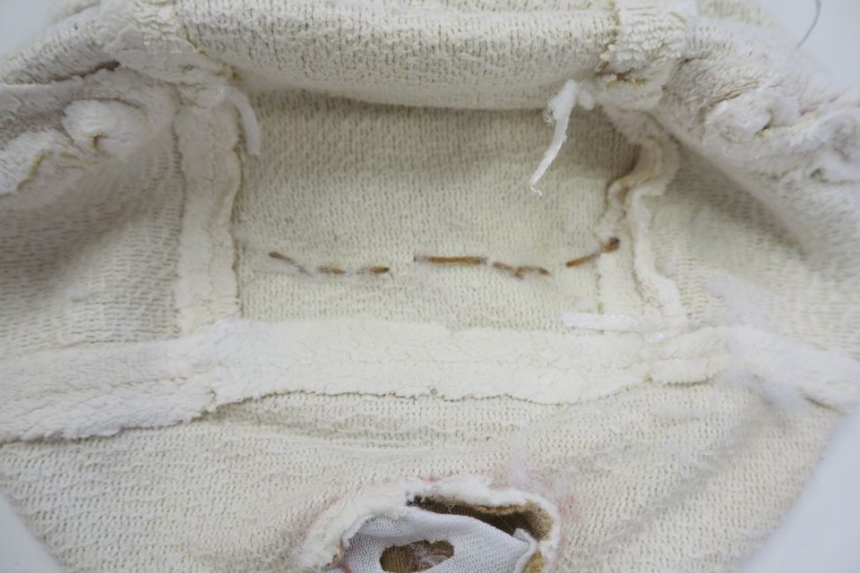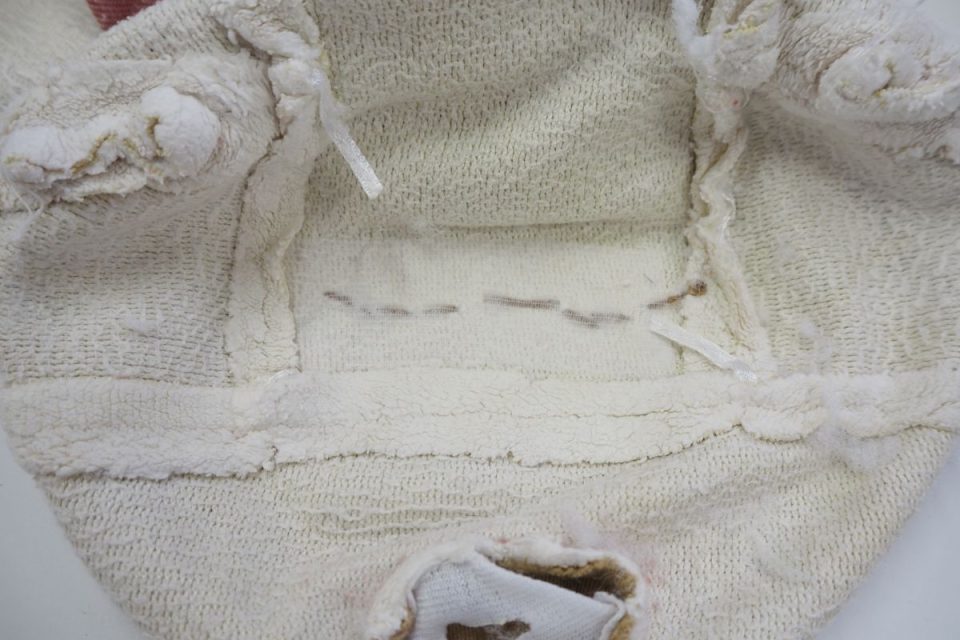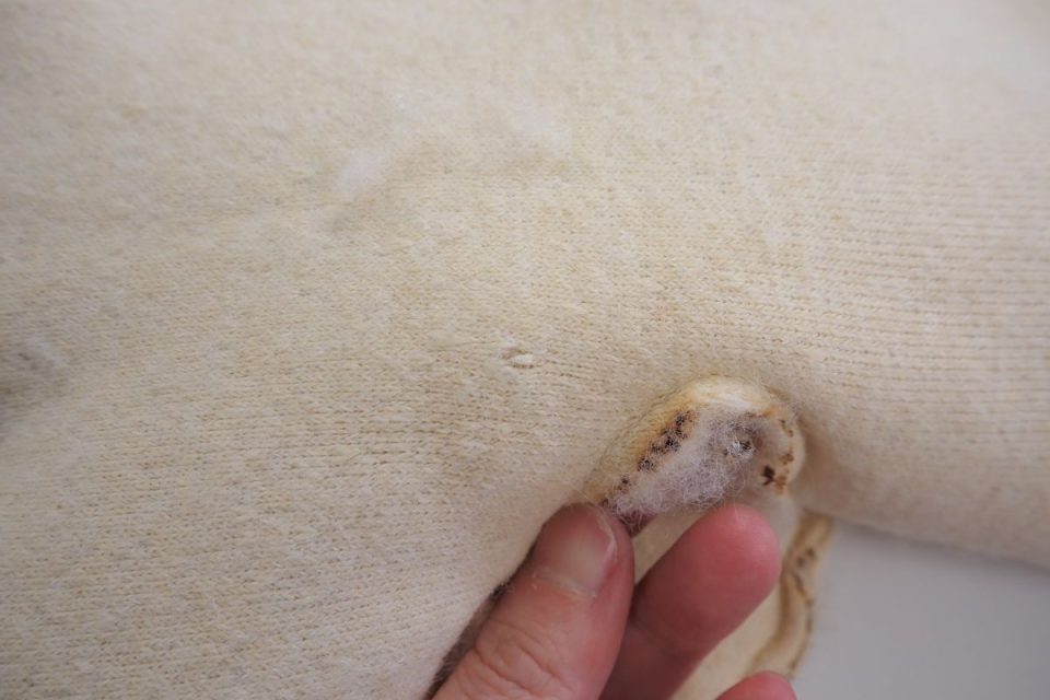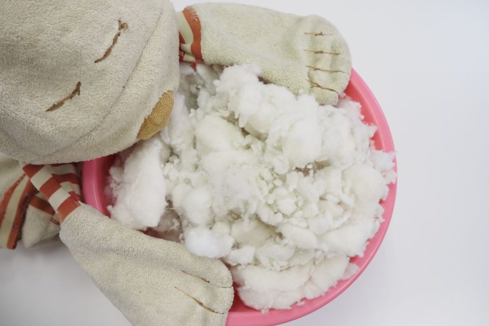 中綿再利用をご希望でしたが、状態的に全ての再利用は難しいので、一部再利用(一握り程度の量)とさせていただきます。