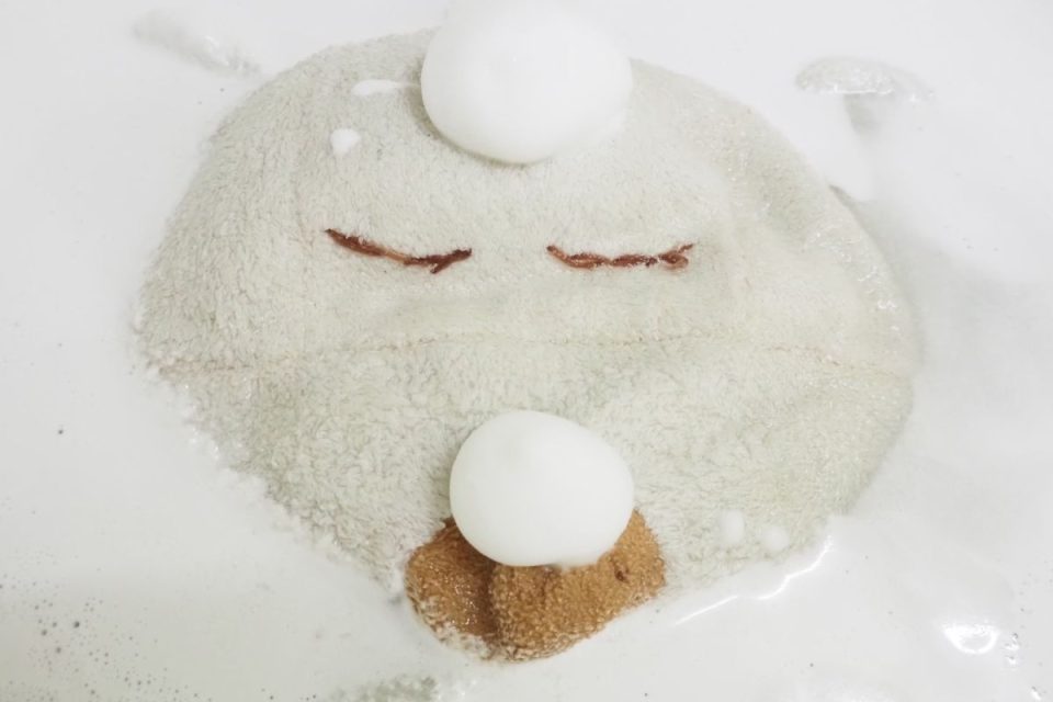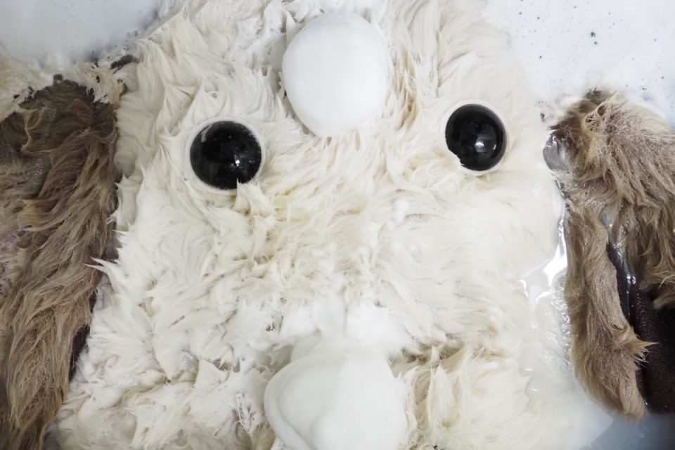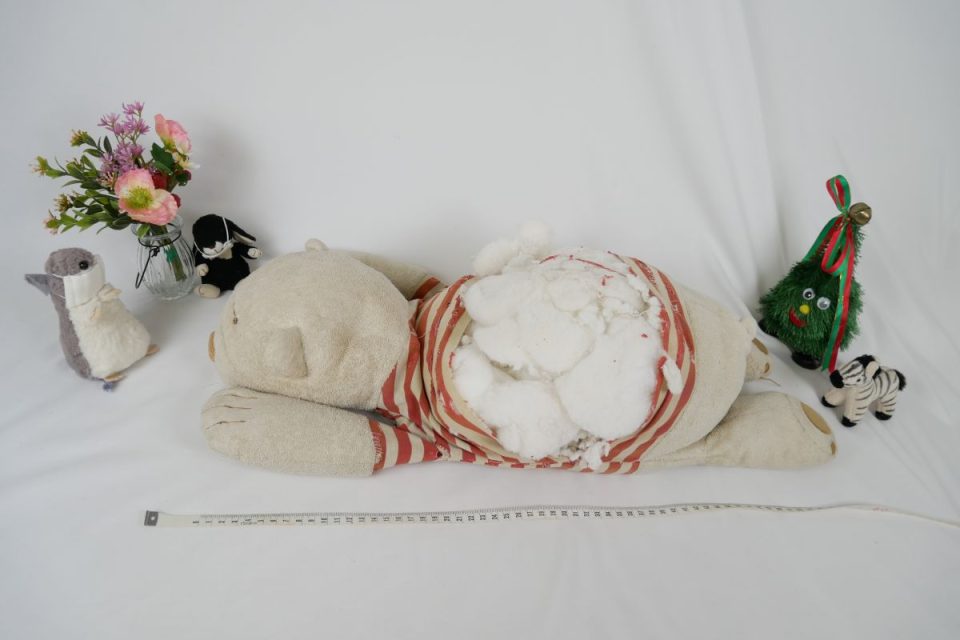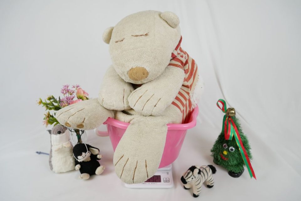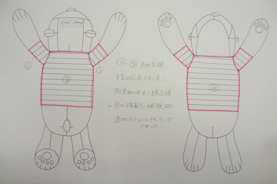 わんこくんはお体が大きいためお風呂に入る際にパーツを分けてお入りいただくことになりますので、縫い直しの治療などが含まれます。