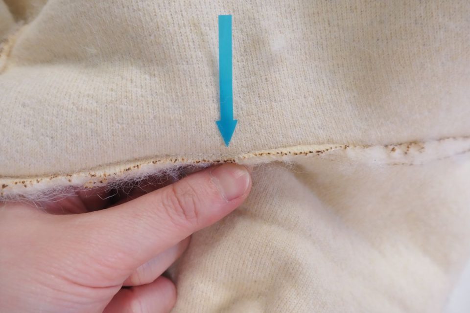 縫い代が少ない箇所はそのままにしておくと縫い外れる恐れがありますので、縫い代をしっかりととって縫い直します。