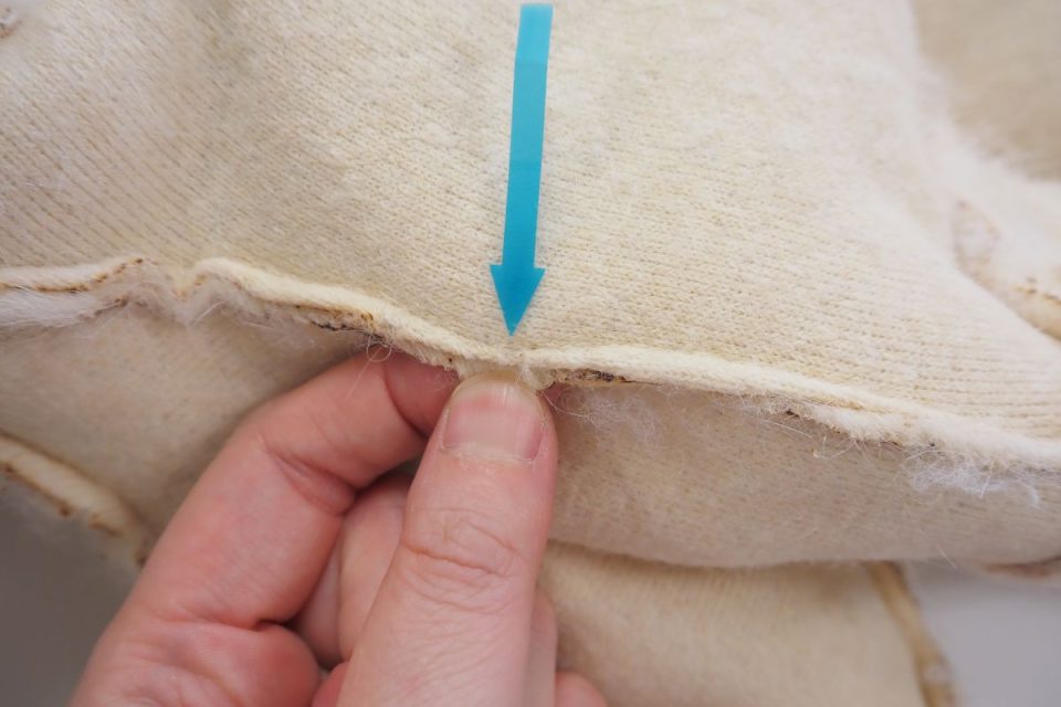 オミミは縫いどまりでしたので、一部縫い線をほどき綿を入れて縫い閉じる、縫いどまり綿交換をしていきましょう!