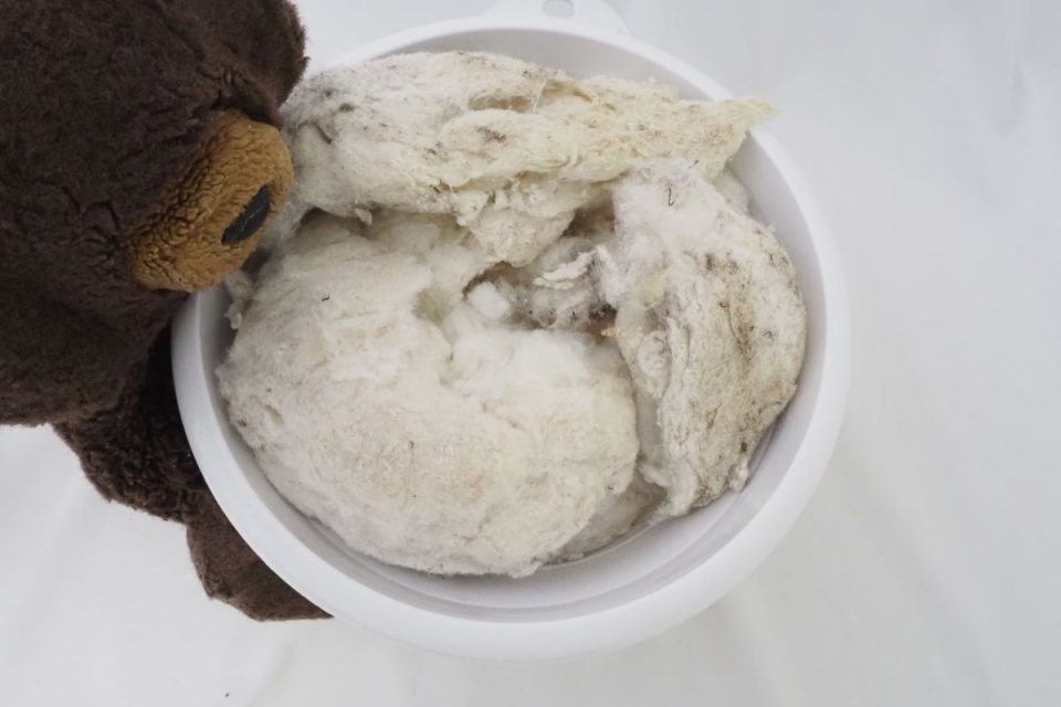 また、こころハートをご希望でしたので、元々の綿を一部クリーニングしてピンクのハートのガーゼにお入れし、綿入れ時にお戻ししましょうね(つ^^)つ♡