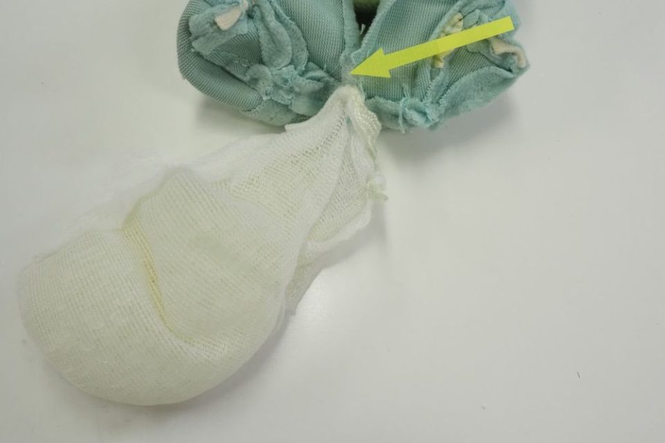 お風呂に入る際は負担がかかりますので、一旦お外しし綿入れ時に同じ位置で固定しますね。